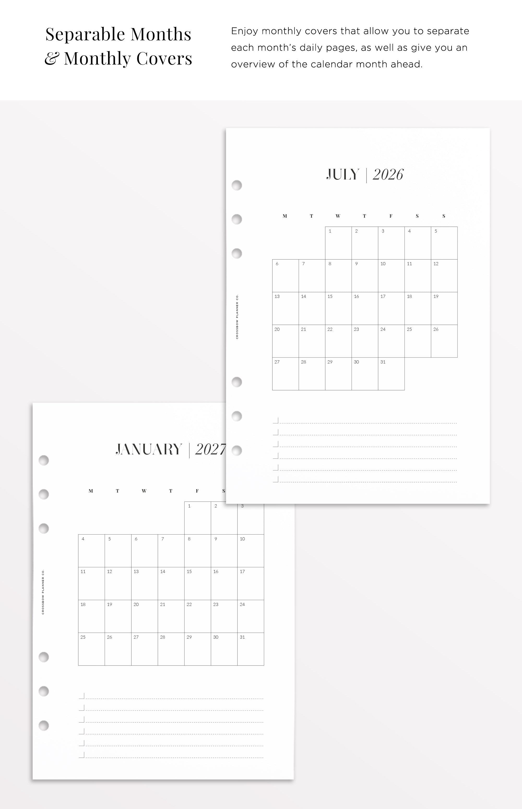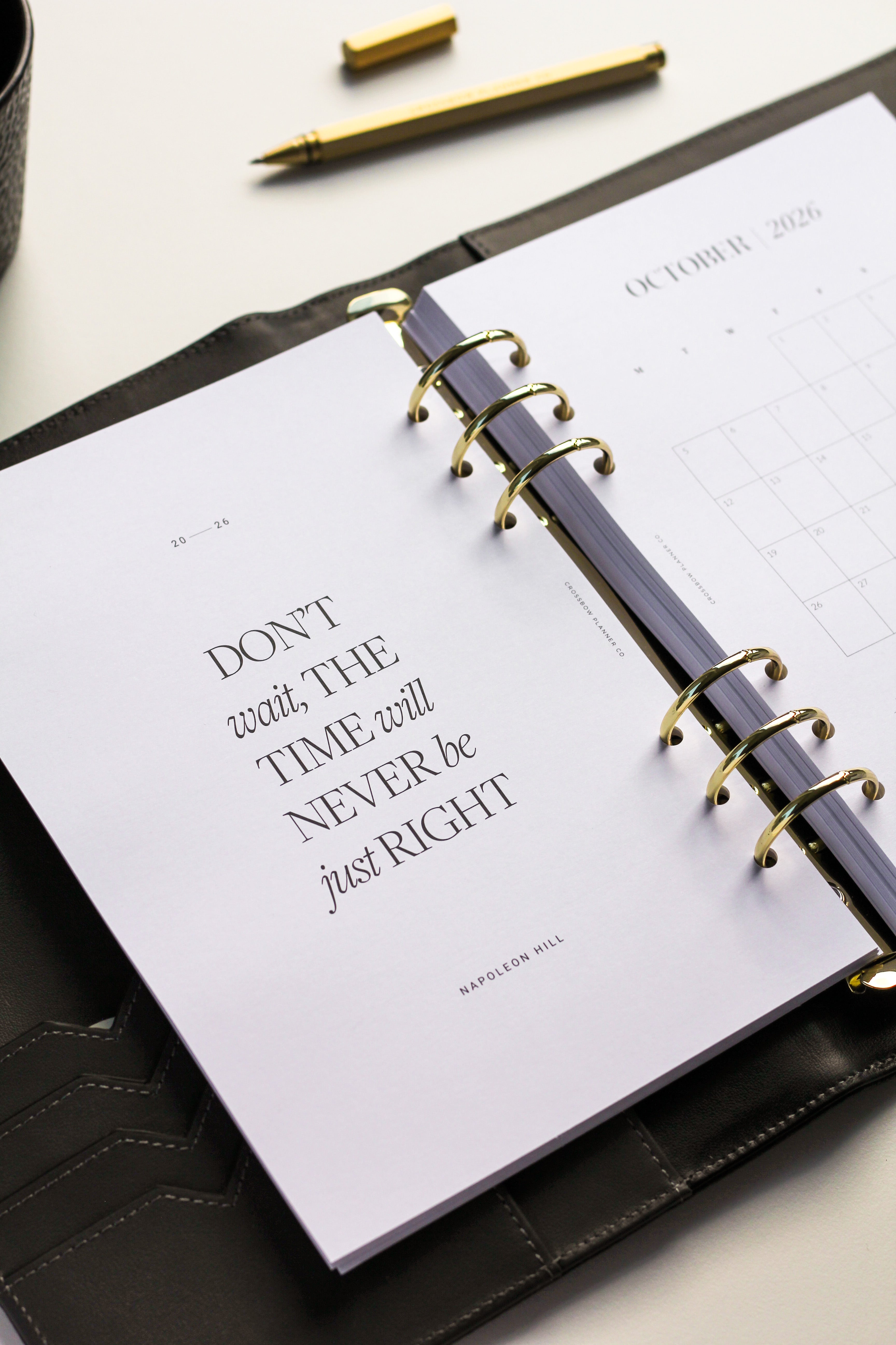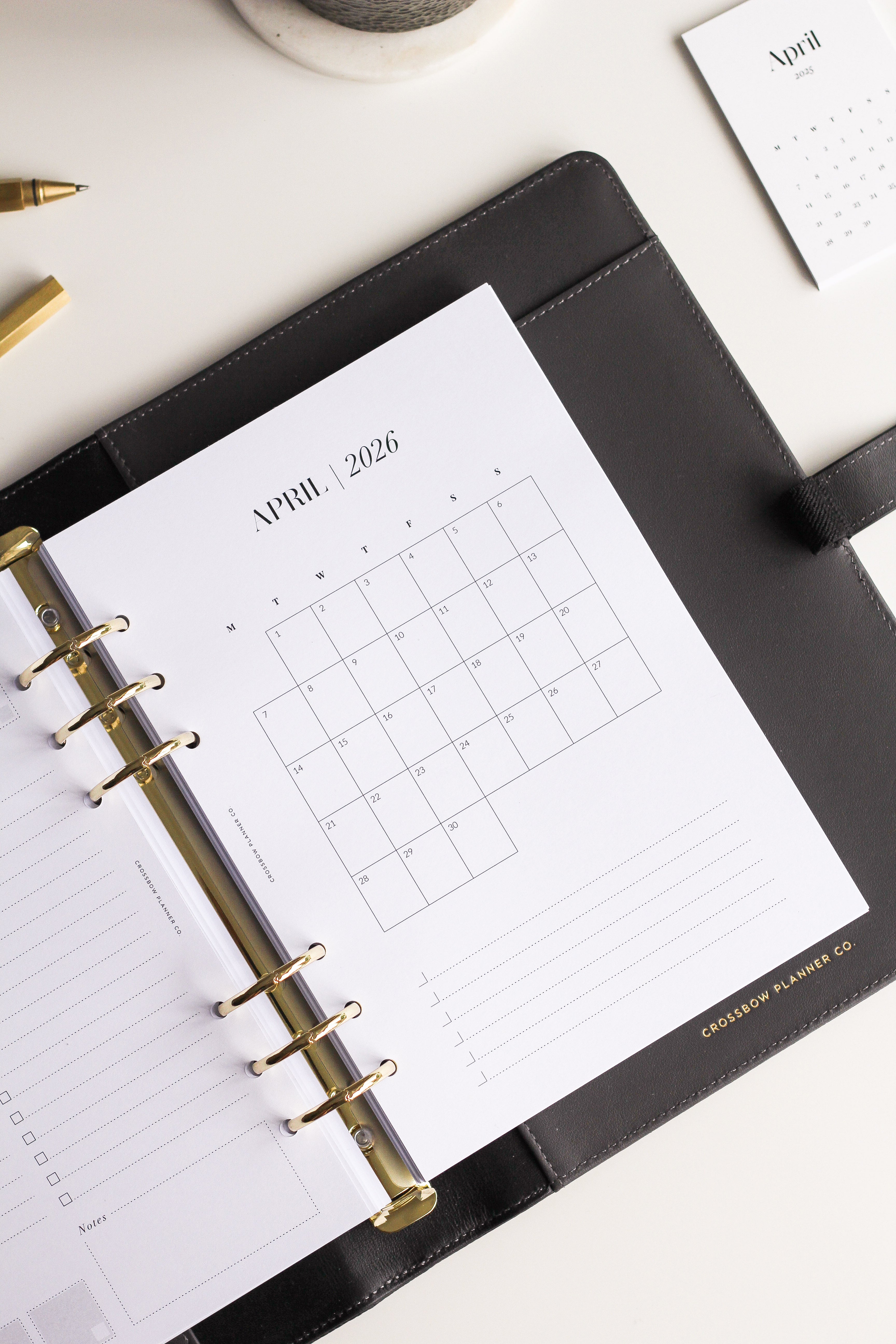 Your planner refills should be as beautiful as the cover that holds them. We're on a mission to bring quality to your daily planning routine, with thick, fountain-pen friendly pages, minimal design and effective planning systems for every area of your life. Our range of A5 Printed Planner Inserts will fit any standard A5 6-ring planner. A5 planner inserts are compatible with planners such as our Crossbow Planner Co. Signature Leather Planner Cover, A5 Filofax and Louis Vuitton Large "GM" Agendas (non-vintage models). Not sure which inserts are right for you? Drop us a line to get a tailored suggestion.