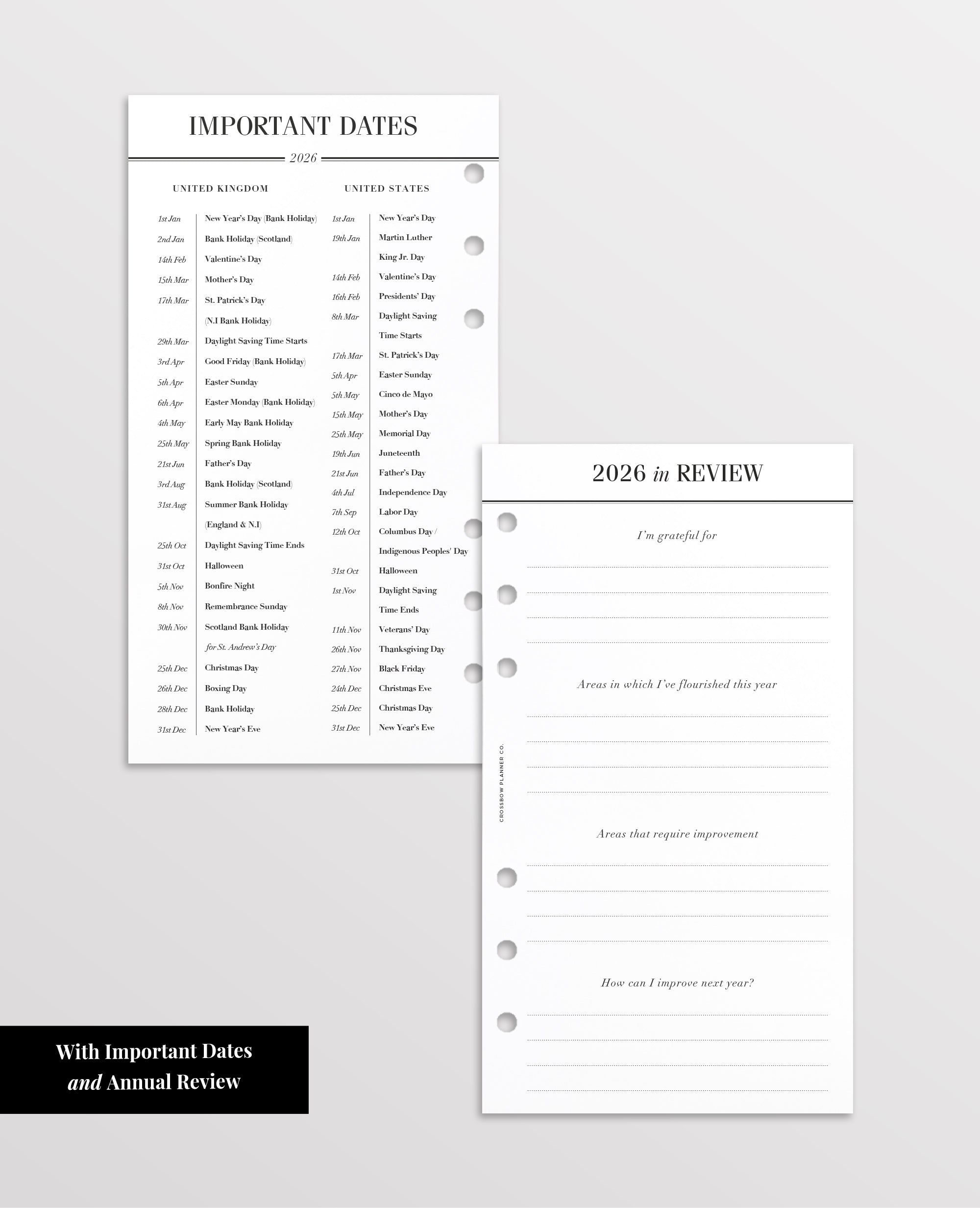 2026 Personal Daily Planner Inserts | Minimal Edition