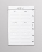 The at a glance, birthday and anniversary trackers are the ideal 6 ring pocket size planner refill for any minimal design lover. Write in important dates along with the birthdays and anniversaries of your loved ones and keep the pages near the front of your 6 ring binder so you never miss an important date again.