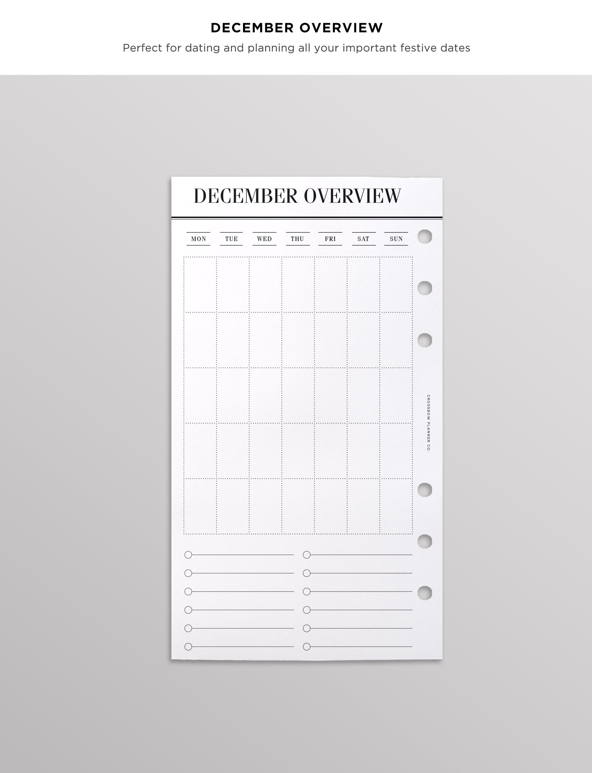 At the beginning of the planner, there's space to write your Christmas Bucketlist so that you can remember to prioritise the fun traditions that make Christmas special. Over the page, you'll find an undated December overview for you to put those fun Christmas events in your calendar. When it's time to write your gift list, you'll find two different types for you to use - one for 'Significant gifts' (i.e. close family or friends that you will be buying multiple gifts for), and a general gift list for everyone else. For your special Christmas meals or small parties, the Christmas menu planner is just what you need to get prepared. Finally, no Christmas planning set would be complete without Shopping Lists and To Do Lists, so you'll find these at the back of your holiday planner inserts set.