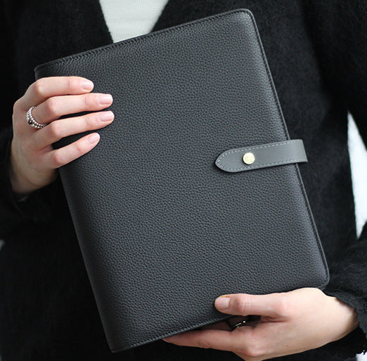 The distinctive style features such as the elegant pointed clasp, arrow cut-out credit card slots, gold coloured rings and two-tone leather (on the 'Noir' edition) make our agenda stand out from the rest. Available in two neutral colour-ways, it is not only perfect for using at home or in the office, but is the ideal planning accessory to grab on your way out to meetings or coffee dates.