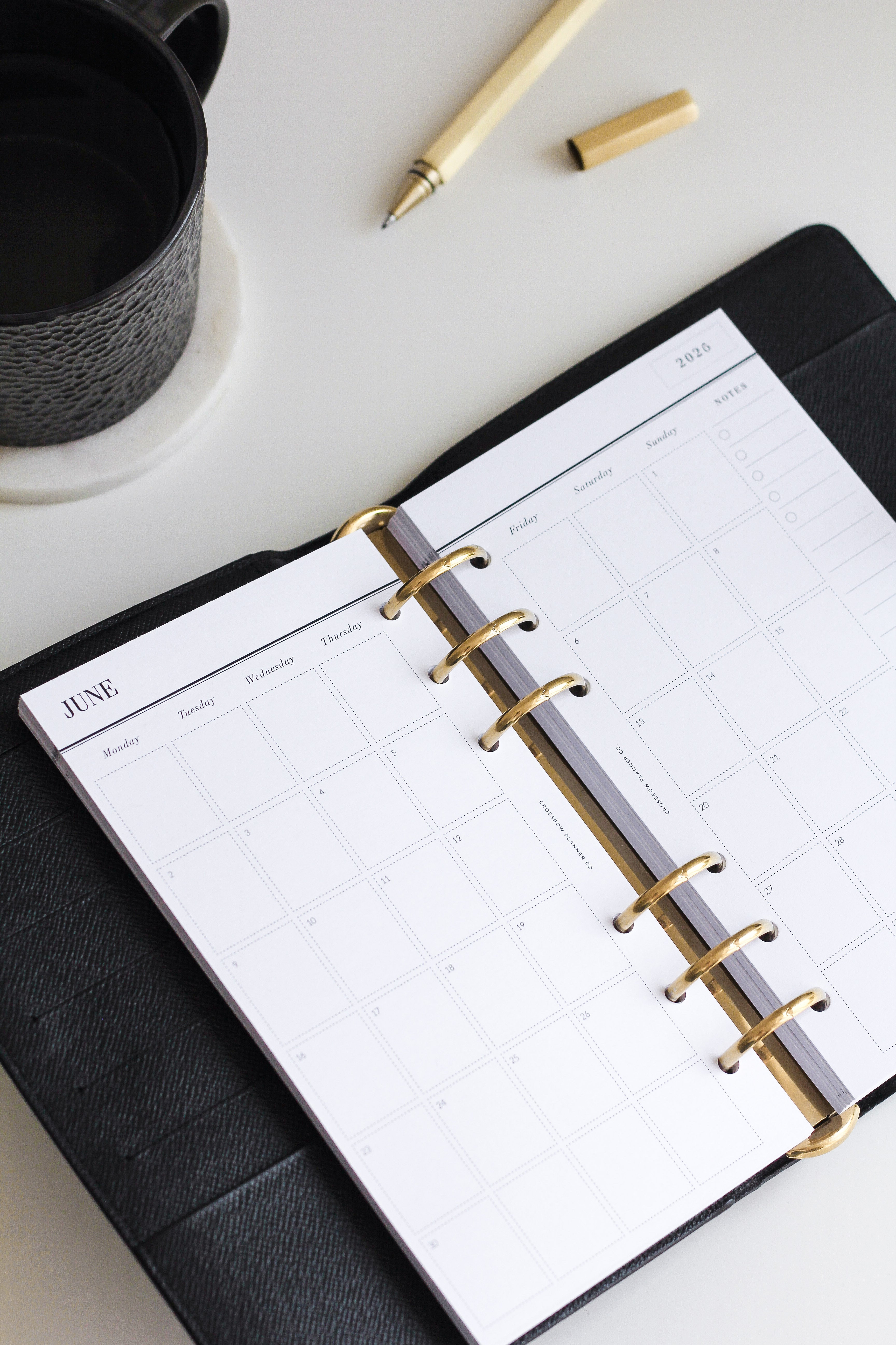 Our planner inserts are compatible with many common brands, such as Filofax Organisers and Louis Vuittons Agendas. Whether you're looking for Filofax refills, LV Agenda refills, or refills for any other standard sized 6-ring planner, our inserts are the perfect alternative to your standard refills.